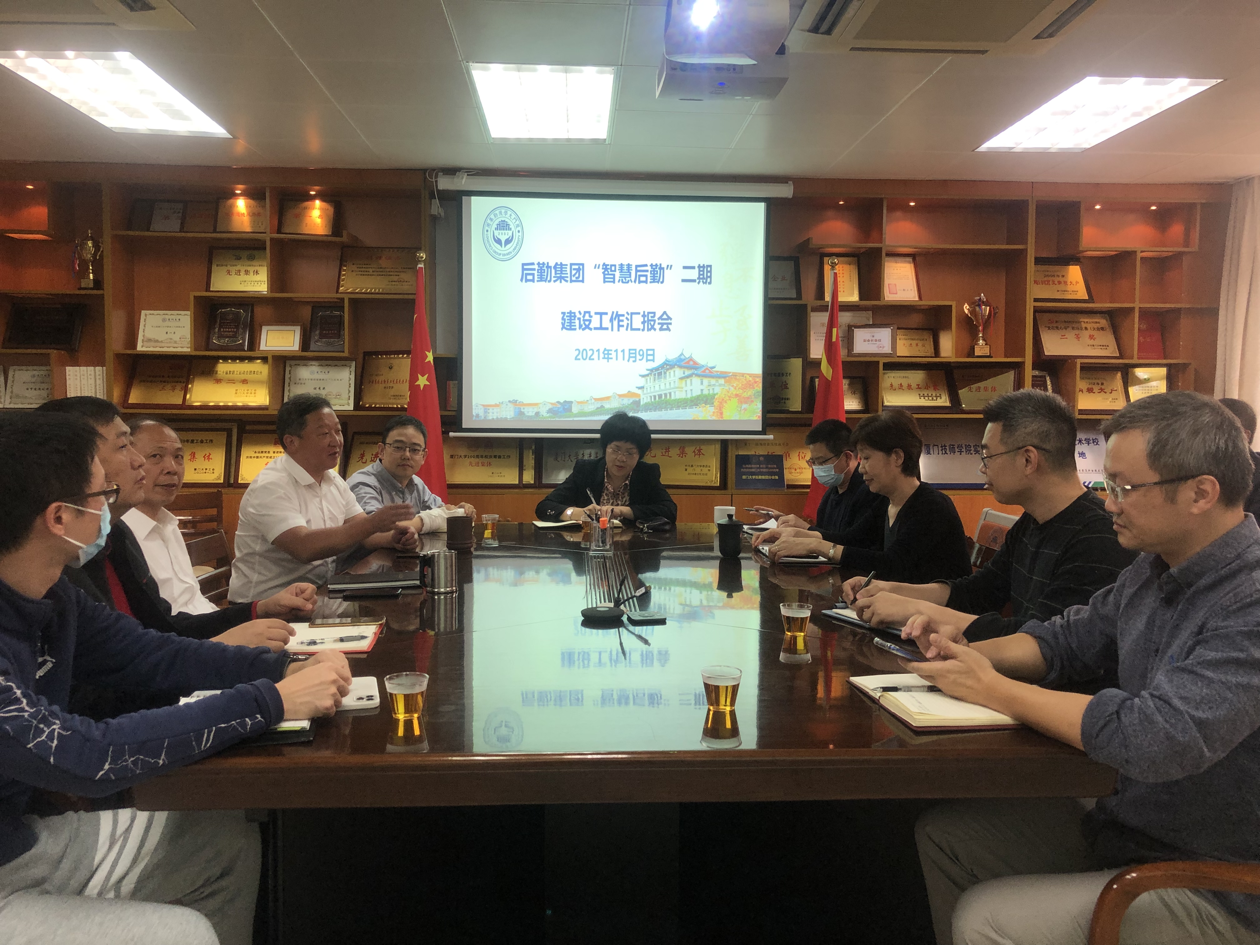 信息与网络中心主任许卓斌、副主任吴宇立就智慧后勤建设如何与后勤集团各项业务结合提出意见和要求。