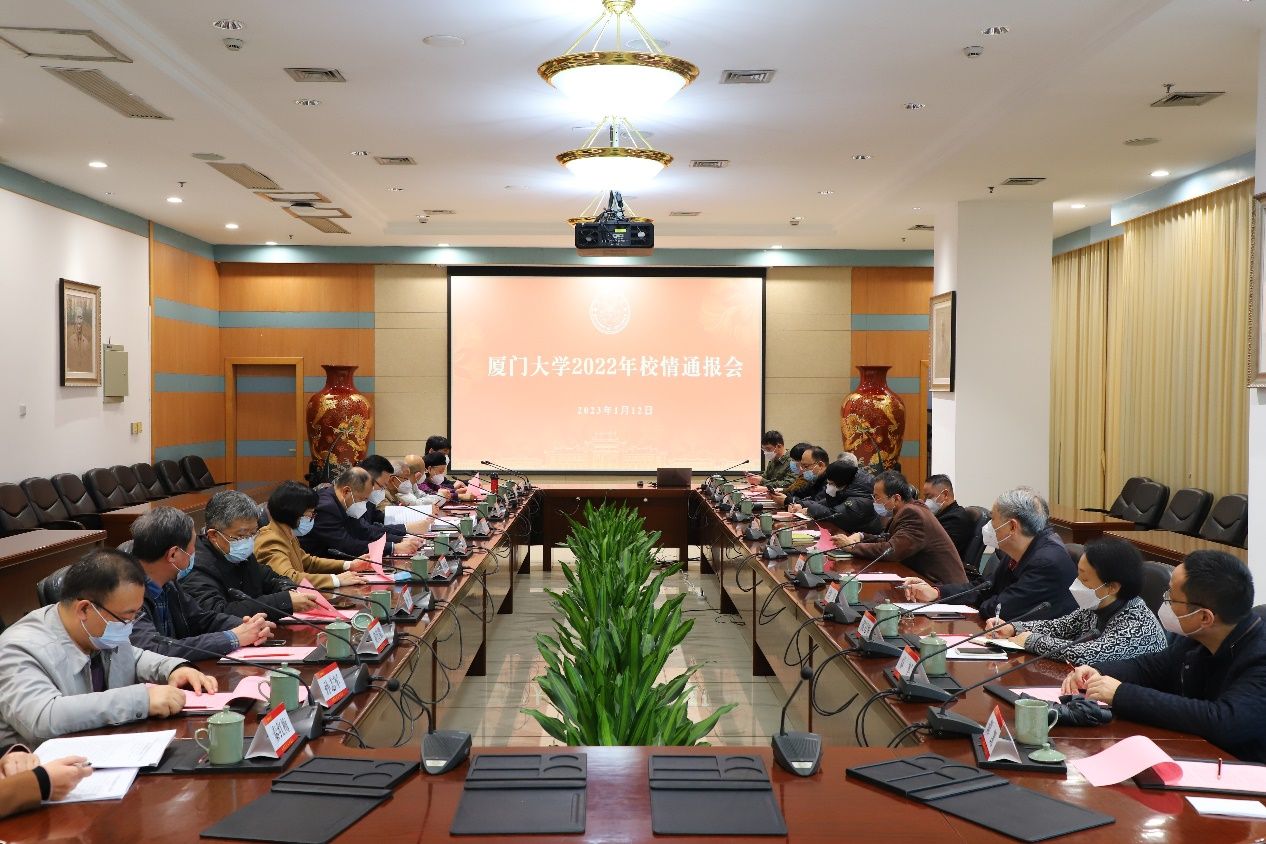 林东伟围绕“坚定不移全面从严治党,不断开创新时代党建工作新局面”“守正创新开展思政工作,培养堪当民族复兴重任的时代新人”“坚持高质量内涵式发展,持续塑造世界一流大学建设新动能新优势”三方面对2022年学校建设发展情况进行全面通报。他指出,一年来,学校坚持以习近平新时代中国特色社会主义思想为指导,认真学习宣传贯彻党的二十大精神,推动习近平总书记致我校建校100周年重要贺信精神落地落实,按照党中央决策部署和教育部党组、福建省委工作要求,全面贯彻党的教育方针,切实落实立德树人根本任务,持续推进党建与事业发展深度融合,深入实施“十四五”规划,扎实推进第二轮“双一流”建设,各项事业取得新进展新成效。