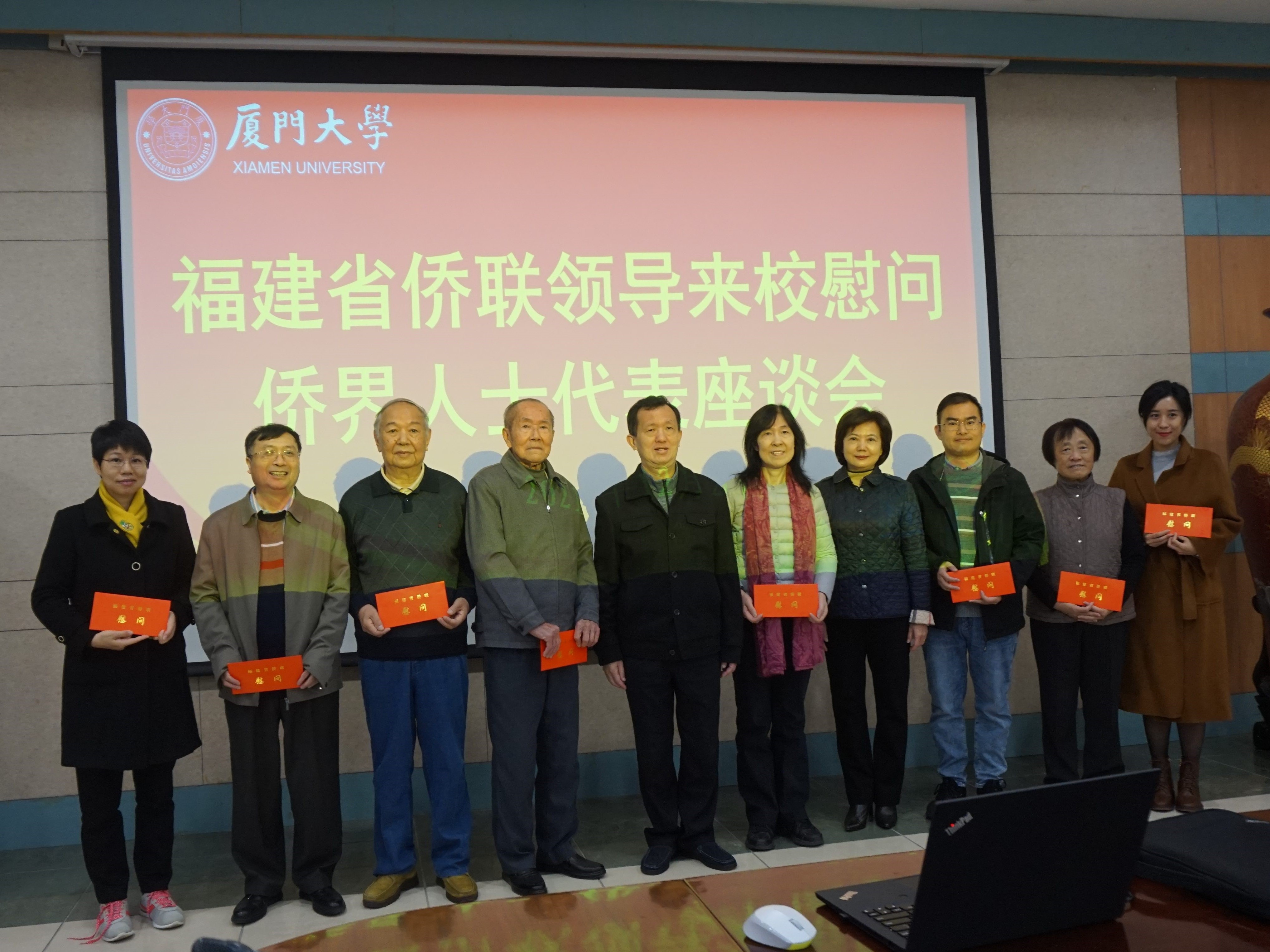 福建省侨联经济科技部部长陈晓、华侨历史文化研究中心(全媒体中心)主任郑建新,厦门市侨联副主席林中英、秘书长杜瑞田,校党委统战部副部长秦红梅、吴旭莉,校侨联主席程璇等陪同慰问。