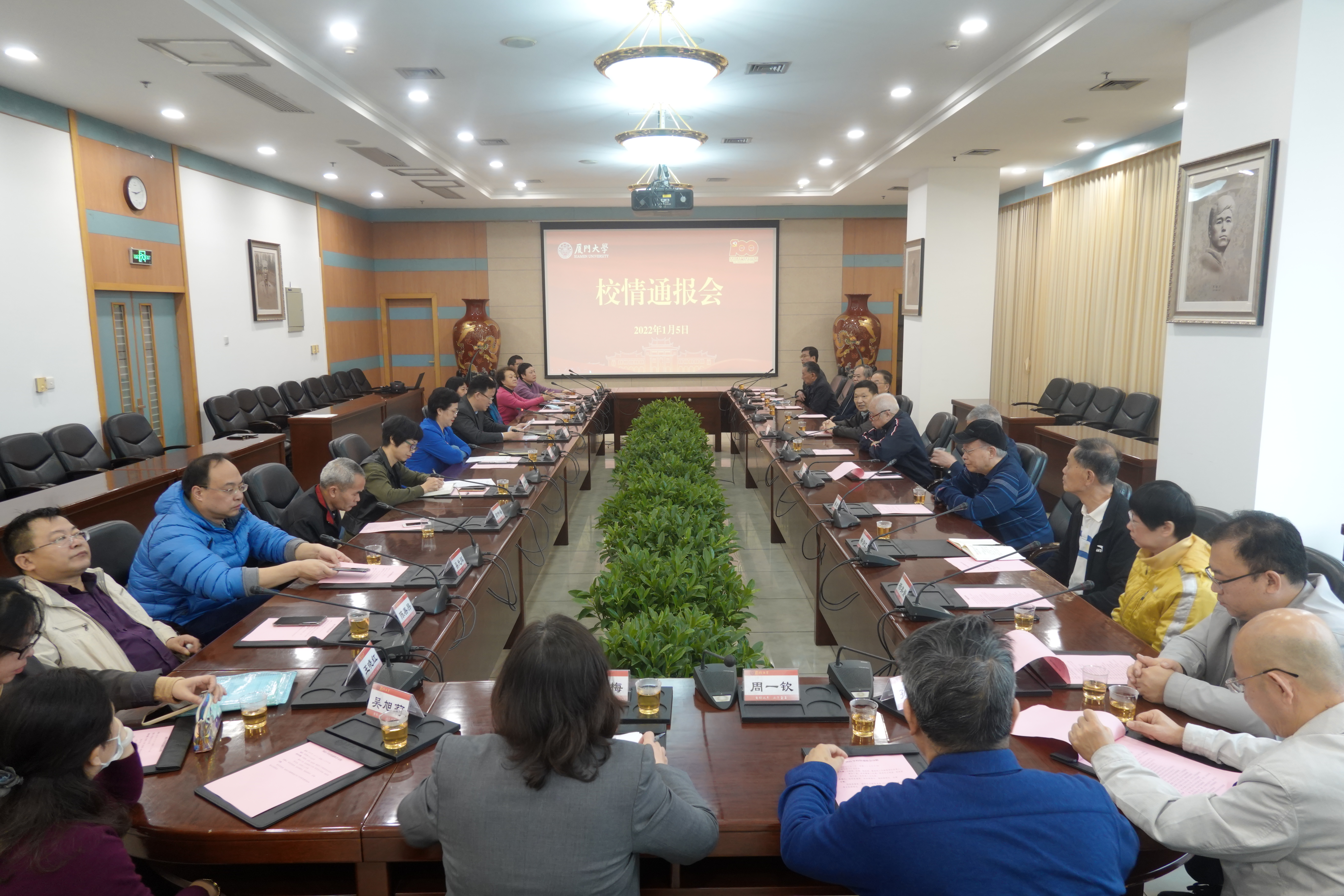 邓朝晖从“深刻领悟中国共产党百年奋斗重大成就和历史经验,不断加强党的全面领导和提高党的建设质量”“坚持用习近平新时代中国特色社会主义思想铸魂育人,推动思想政治工作守正创新”“以习近平总书记重要贺信精神领航,全力推动学校事业高质量内涵式发展”三方面进行通报。她表示,2021年,学校深入学习习近平新时代中国特色社会主义思想和党的十九大、十九届历次全会精神,按照党中央决策部署和教育部党组、福建省委工作要求,坚持把政治建设摆在首位,不断加强党对学校的全面领导,切实落实立德树人根本任务,以建党百年和建校百年为契机,凝心聚力、奋勇争先,加快推进中国特色世界一流大学建设,学校各项事业取得了新的成效。