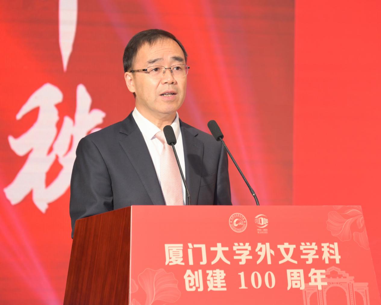 张宗益向外文学科创建100周年表示祝贺。他指出,厦门大学外文学科是厦大办学历史最悠久、文化底蕴最深厚的学科之一。一代代外文人严谨治学、勤于耕耘,取得了丰硕的办学成果,形成了鲜明的学科特色,培养了大批优秀外语人才,为我国外语教育发展贡献了积极力量。站在新征程的起点上,外文学科要坚持以习近平总书记致厦门大学建校100周年重要贺信精神领航,对标党中央对外语教育的新要求新期盼,发扬光荣传统,矢志奋进一流,砥砺办学、守正创新,开创外文学科建设发展新局面。要进一步强化学科优势,凝练学科特色,提升学科核心竞争力,着力推动学科内涵发展;要坚持“为党育人、为国育才”的初心使命,大力培养一流外语人才;要主动面向国家战略发展需要,紧紧围绕习近平总书记提出的“全球文明倡议”,充分发挥外文学科多语种的语言优势,为向世界展示真实、立体、全面的中国贡献智慧,为中华文化海外传播、增强中华民族凝聚力和向心力,推动世界文明交流互鉴、促进人类文明进步,展现厦大外文学科的作为和担当。