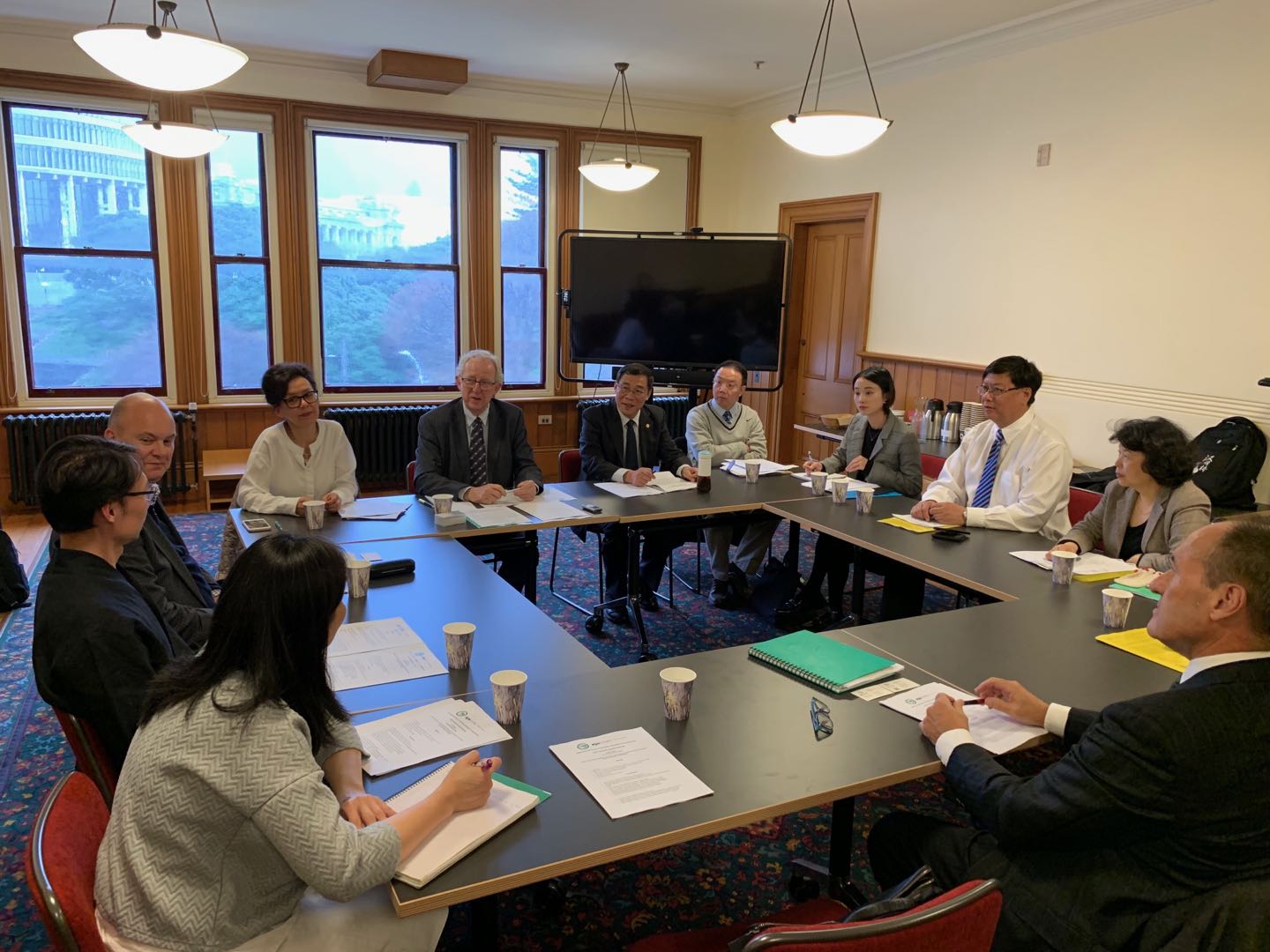 随后,李建发参加了厦门大学与惠灵顿维多利亚大学两校合作交流座谈会。出席此次座谈会的有惠灵顿维多利亚大学副校长Blair McRae、分管管理学部副校长David Harper、教育学院院长Stephen Dobson、亚洲事务主席Siah Hwee Ang、人文学部副院长John Macalister、语言文化学院院长Sally Hill 、国际部国际声誉顾问Matthew O’Meagher 等各院系及部门负责人。会议由Blair McRae副校长主持,他对厦门大学代表团的来访表示热烈欢迎。李建发回顾了两校在孔子学院以及相关领域的合作成果,并同与会各院系及部门负责人一一探讨了深化两校具体学院合作的可能性,并就推进两校优势学科的互补交流提出了意见和建议。