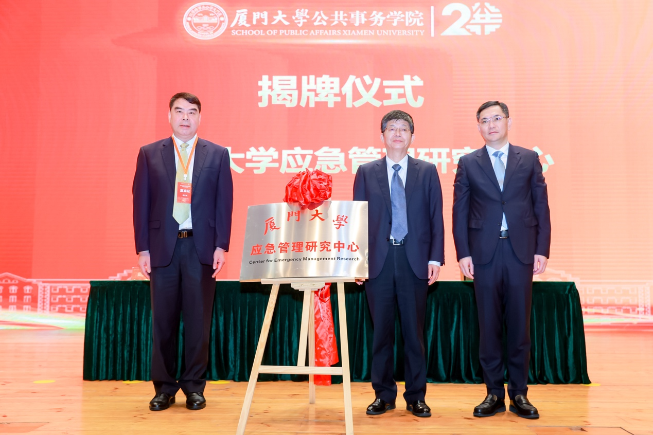 为进一步推进公共管理学科下应急管理二级学科建设,加强应急管理基础和前沿理论研究,推动更多学术创新成果在闽落地转化,厦门大学与福建省应急管理厅、国家矿山安全监察局福建局达成战略合作,成立了“厦门大学应急管理研究中心”。大会举行了中心揭牌暨共建协议签约仪式。厦门大学党委副书记徐进功教授,福建省应急管理厅党委书记、厅长丘毅,国家矿山安全监察局福建局党组书记、局长戴文鹏共同签约,并为中心揭牌。