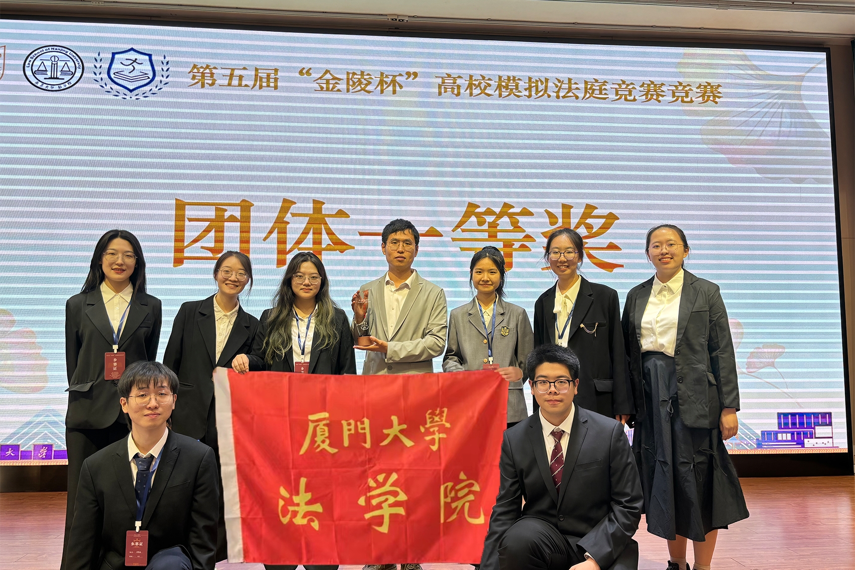 5月12日,第五届“金陵杯”高校模拟法庭竞赛决赛在南京大学鼓楼校区举行。经过激烈的角逐,厦门大学代表队于全国33支赛队中脱颖而出,荣获总冠军。队员庄钧达获“最佳辩手”荣誉称号,队员郑鑫瑜获“优秀辩手”荣誉称号。