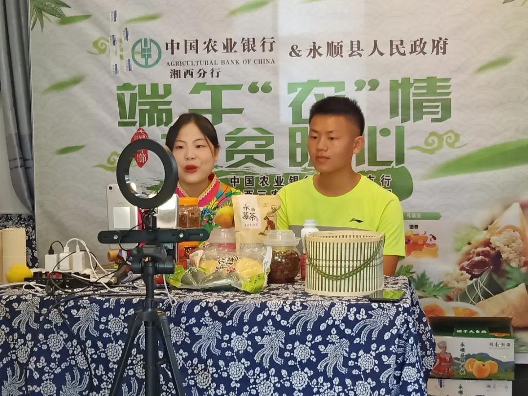 一张方桌,一块花布,一台智能手机,一盏直播高光灯……一个简易的直播间就在湘西三农电子商务有限公司里搭建了起来。毛坝乡莓茶、永顺黄桃、万坪镇干豆腐……端坐在琳琅满目的土特产前,实践队员与土家阿妹的“直播带货处女秀”正有条不紊地展开:“观众朋友们大家好,今天啊我们将带大家走进永顺县车坪村,走进那些原汁原味的生态好物中去……”。