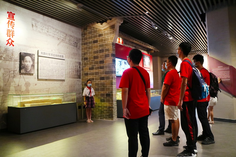 8月11日,实践队来到桂林市兴安县红军长征突破湘江纪念馆,队员们对湘江战役的历史背景和意义有了更全面深刻的认识。队员们还登上狮子山顶,在纪念碑前鞠躬默哀,向为新中国英勇牺牲的革命先烈致敬。