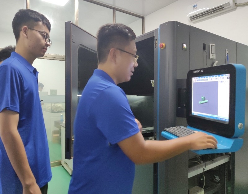 在广西机械工业研究院,实践队员们在一线科研人员的指导下,体验了3D光固化打印和金属打印机实验,动手操作3D打印机,通过切身参与生产一线工作、学习一线生产任务,将课堂所学理论知识与实际操作相结合,深化了劳动观念、培养了劳动意识、增强了劳动创新能力。
