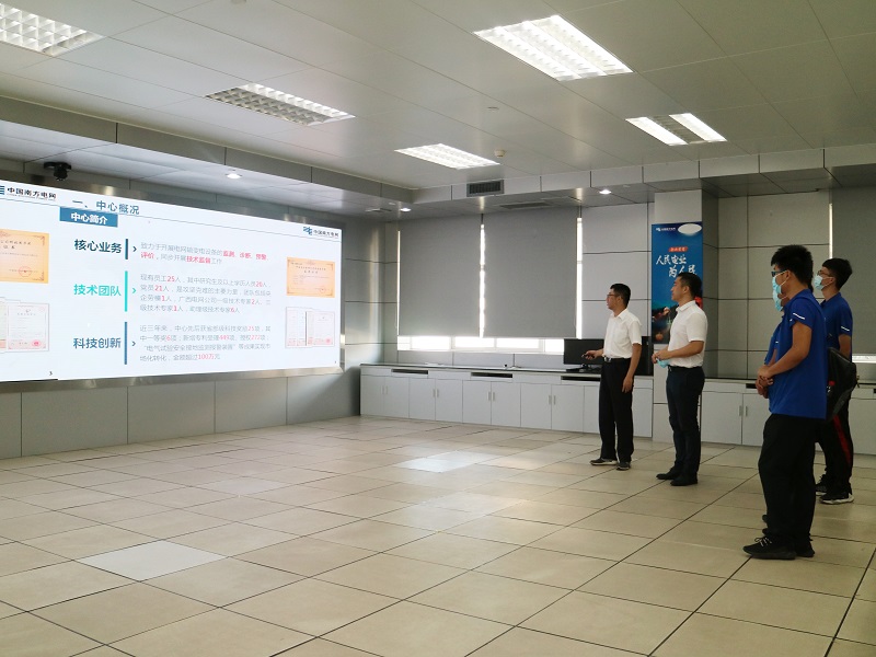 8月10日,实践队来到广西电网公司电力科学研究院交流,参观了电力智能监控中心、化学中心以及高压试验大厅。面对一台台完备而精密的实验仪器和设备,队员们赞叹不已,心中对高新技术的向往和追求也更加坚定。