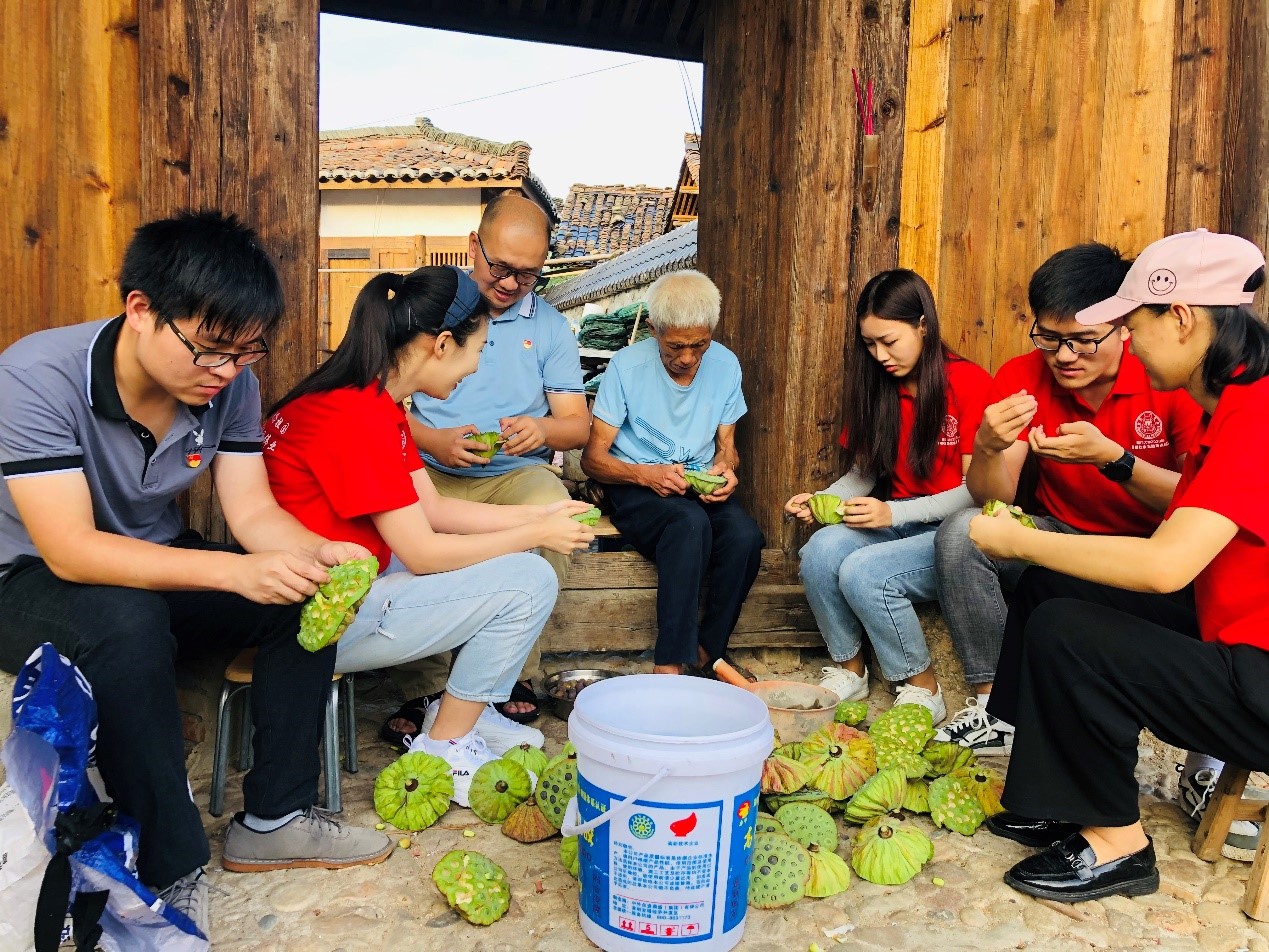 9月1日下午,实践队全体成员在建宁县均口镇开展劳动教育。大家意识到如果高校学生希望在毕业后为城市发展、乡村振兴做出更大贡献,就必须要深入乡村基层,“上山下乡”,体验乡村生活,理论与实际相联系,才能提高基层工作能力,成为接地气又能干的中国特色社会主义建设者和接班人。在均口镇镇长江代文陪同下,实践队参观了中国建莲文化馆,认真聆听了江镇长关于建宁县农耕文化的讲解,感受到莲农在莲塘劳作的艰辛。随后实践队成员深入田间体验了在烈阳下采摘莲蓬的不易和收获果实的喜悦,并进入农户帮助莲农剥莲子,在实际动手中感受劳动的乐趣与意义。