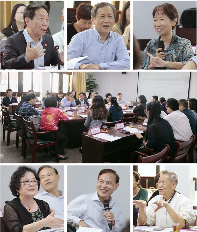 在对话青年教师环节,马克思主义学院石红梅强调了“情感”和“方法论”对课程思政的作用,她主张感性和理性、主观和客观的有机结合,强调课程思政应从知识要素切入,通过讲故事、讲案例增加吸引力,同时要有现实感,更加接地气。信息学院陈启安通过人工智能技术、网络空间治理等案例,强调课程思政应“以德为先”,引导学生养成符合道义的学科伦理。生命科学学院张连茹表示,课程思政水平取决于教师能力、责任感和认识高度,好的课程思政在方法上讲究润物无声,潜移默化,融入家国情怀。建筑与土木工程学院李渊从思政站位、技术人文、交叉思维、学术根基、学者故事、创新启发和翻转课堂等方面展开分享。医学院马永慧以基因工程、器官移植捐赠、辅助生殖技术、医患关系处理、动物实验、公共卫生等医学伦理教学案例,探讨了学科伦理中的技术与人道。数学科学学院杜妮,从新生研讨课切入,以名师谈“景润精神“、哥德巴赫猜想话剧为例,论证了专业课与思政元素有机融合更有效果,并希望通过沙龙的经验交流实现课程思政能力从“融合”到“化合”。材料学院“蛋炒饭男神”姚荣迁强调教师立德树人,首先要树立个人魅力,同时他还提出了检验好思政的两大标准:“时间过得真快”和学生的鼓掌认可。人文学院的王烨说,课程思政是立德树人任务中“立德”的重要一环,不能止于“立项”,应构建常态化的支持环境。
