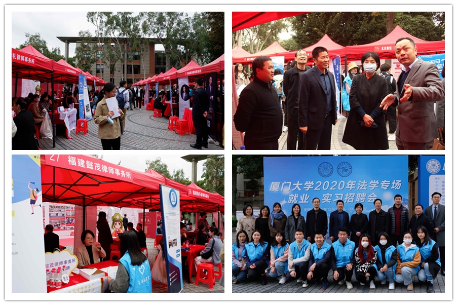 为积极响应教育部《关于做好2021届全国普通高校毕业生就业创业工作的通知》,帮助2021届毕业生更加充分更高质量就业,拓宽在校学生就业实习平台,12月15日,厦门大学2020年法学专场就业、实习招聘会在三家村广场举行。来自全国各地的近四十家用人单位齐聚现场,近千名学生参加。