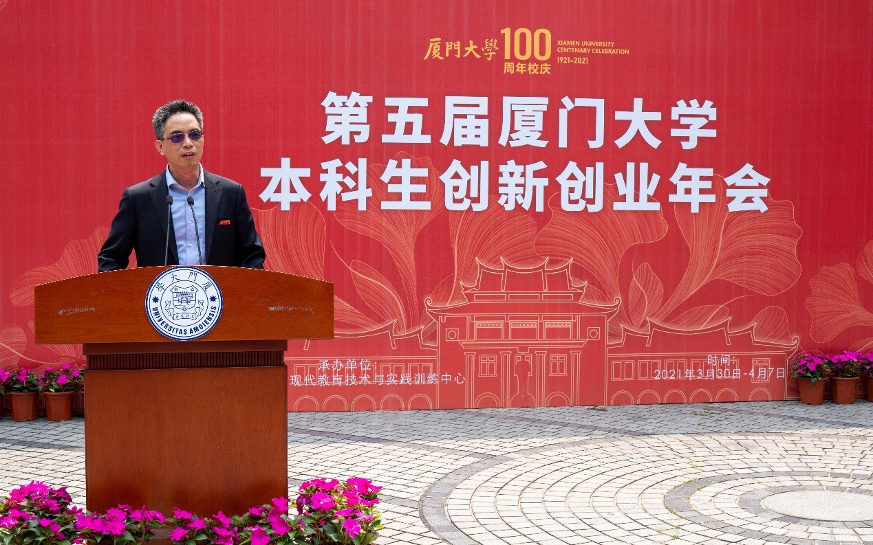 3月30日中午,第五届厦门大学本科生创新创业年会成果展在三家村学生广场拉开帷幕。周大旺副校长出席,学校机关部处和学院领导、获奖项目师生代表等200余人参加了本次开幕式。开幕式由教务处处长、现代教育技术与实践训练中心主任计国君主持。