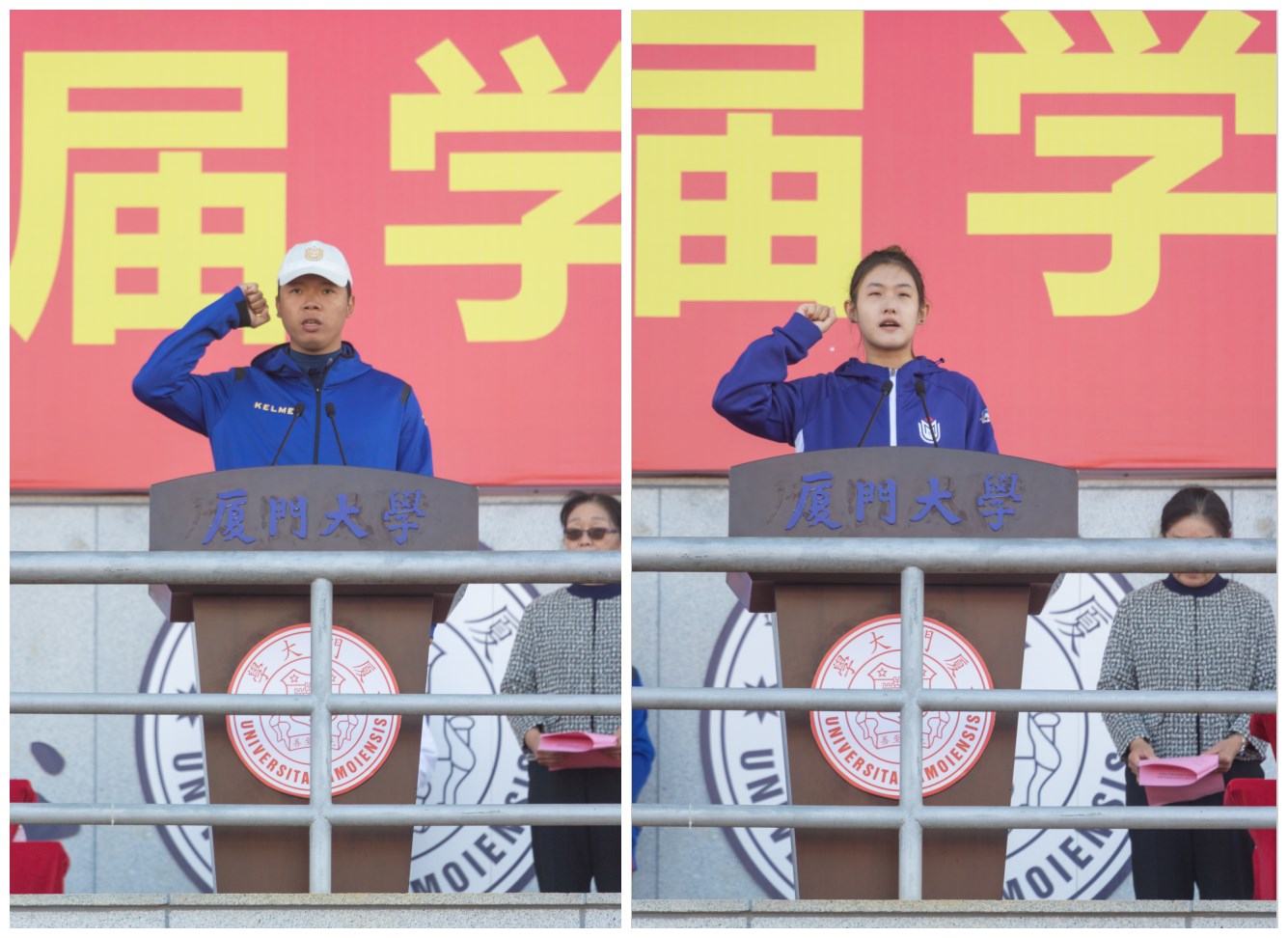 航空航天学院本科生何佳玉,体育教学部涂伟龙分别代表运动员、裁判员宣誓。