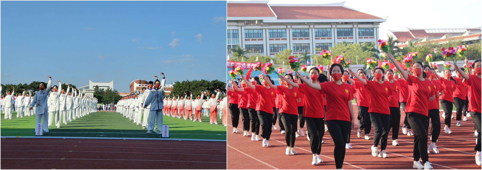入场式中,各学院代表队逐一入场,他们步履坚定、口号嘹亮,各方阵精彩纷呈、各具特色,充分展现了厦大学生昂扬向上、奋勇争先的风采。由12个学院组成的队伍还进行了健身气功八段锦表演,一动一静,刚柔并济,一招一式,彰显着中华传统文化的魅力。