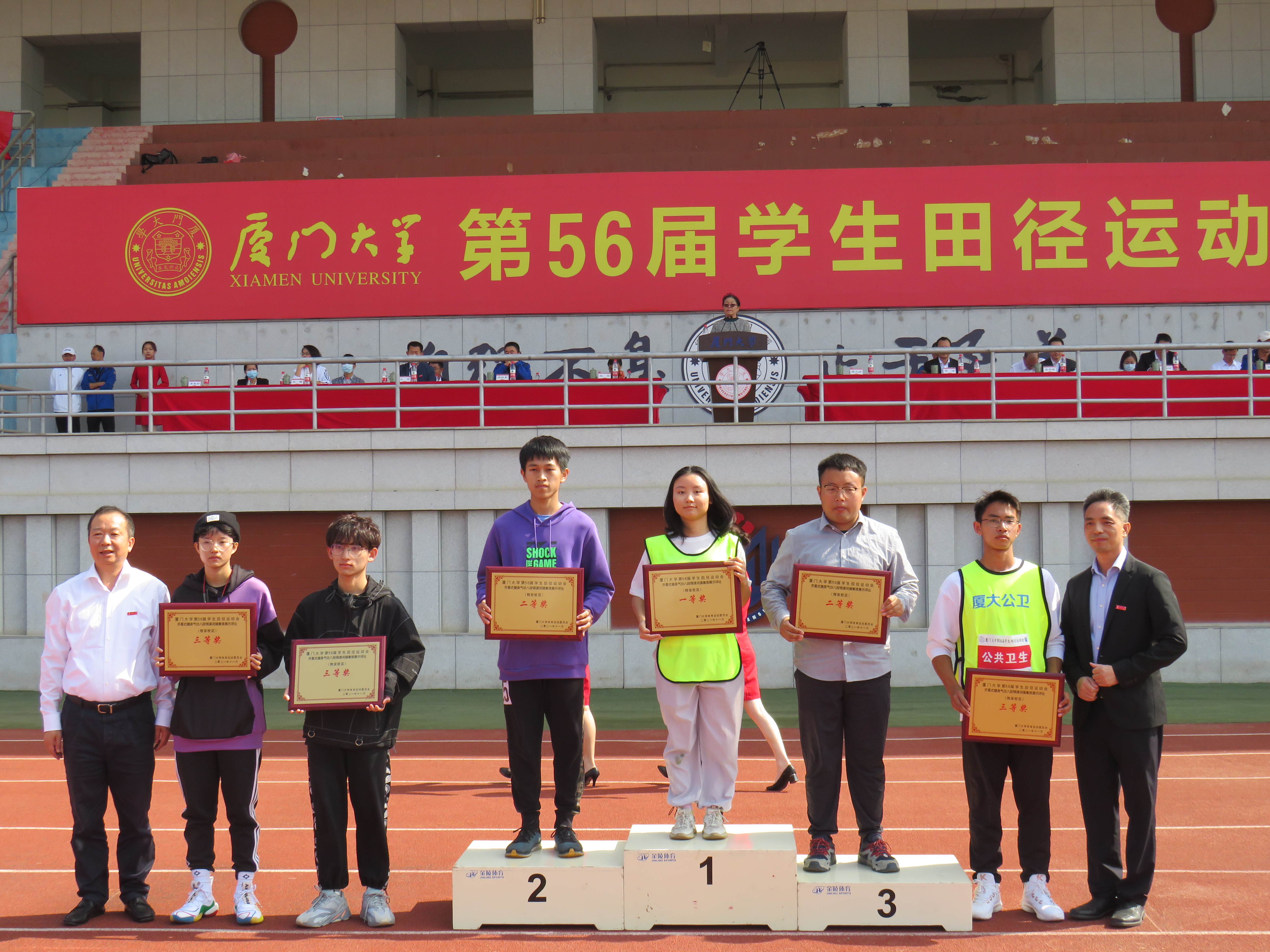 经过激烈角逐,生命科学学院最后摘得翔安校区学生团体总冠军,航空航天学院和电子科学与技术学院名列亚军和季军。生命科学学院、环境与生态学院、公共卫生学院、医学院获评体育道德风尚奖。生命科学学院获得开幕式课间操健身气功八段锦展示评比一等奖,航空航天学院、医学院获二等奖,信息学院、公共卫生学院、电子科学与技术学院获三等奖。副校长周大旺、校长助理陈光为获奖学院颁奖。