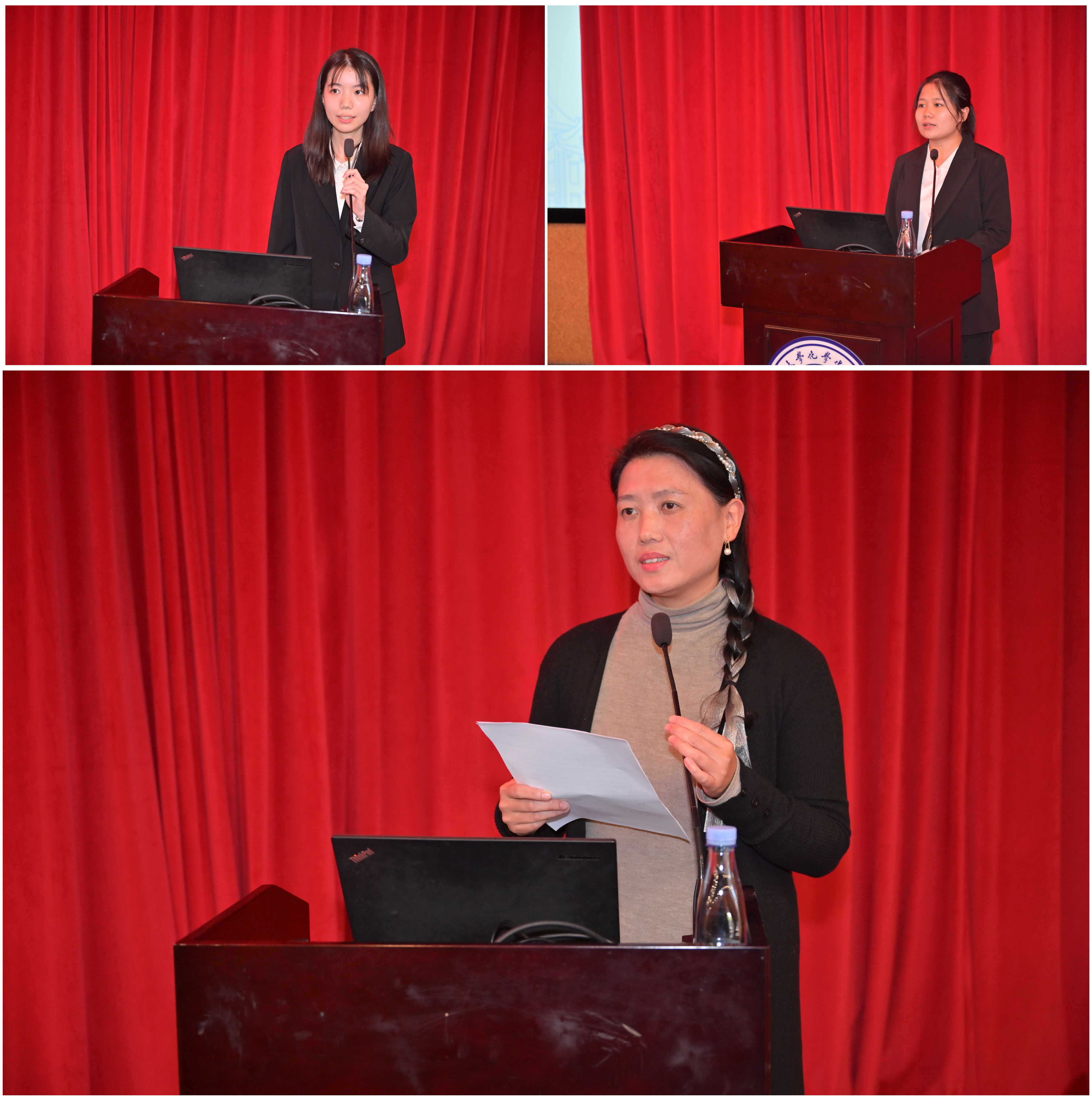 马克思主义学院教师吴文琦作为指导教师代表上台发言。她说,实践教学作为思政课“三位一体”教学模式中重要的一环,在提升大学生思想政治理论素养方面起到重要作用。今年恰逢建党百年、建校百年,马克思主义学院围绕“百年党史学习教育”主题开展实践教学活动,学生在实践教学中学真知、悟真谛,在实践锻炼中砥砺品质、提高本领,提升各方面的能力。她希望同学们能够倍加珍惜社会实践的机会,以饱满的热情、积极的态度、创新的精神参加社会实践活动。