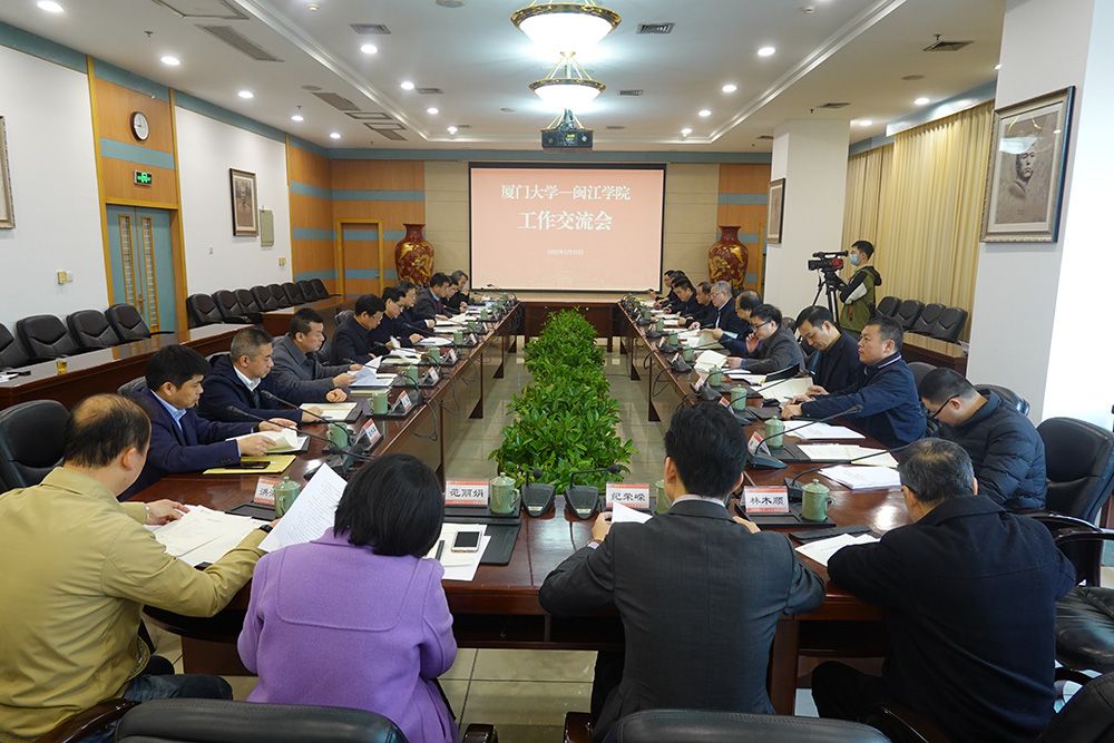 2月25日上午,厦门大学-闽江学院工作交流会在颂恩楼召开。两校领导和有关单位负责人就厦门大学支持闽江学院建设高水平有特色的应用型大学相关议题展开交流研讨。我校校长张荣,副校长邱伟杰、江云宝,闽江学院党委书记叶世满、校长王宗华,副校长李新贤、陈兴明出席。