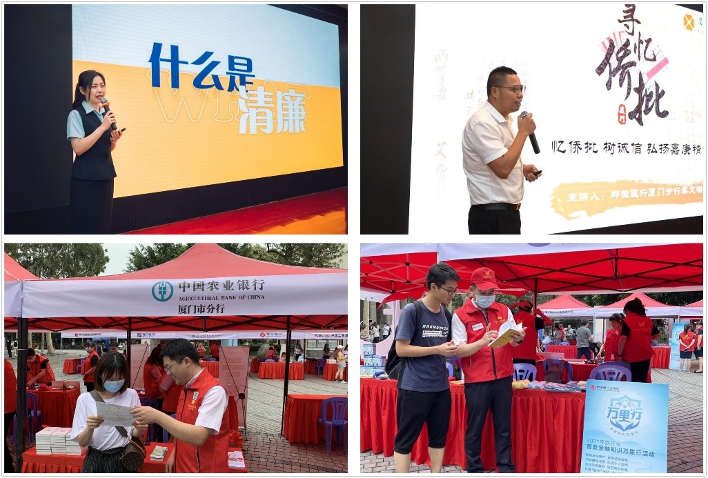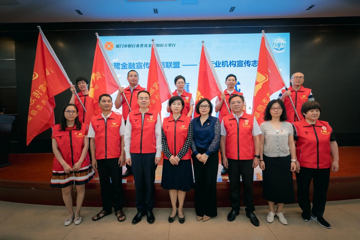 厦门市银行业协会积极响应厦门银保监局“i鹭金融宣传志愿联盟”关于组建宣传志愿队的号召,成立“银行业宣传志愿队”,并推动会员单位组建了33支银行业机构宣传志愿队,活动现场进行了“i鹭金融宣传志愿联盟·银行业宣传志愿队”授旗、授牌仪式。