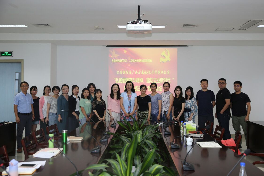 为迎接建党98周年,把学习贯彻习近平新时代中国特色社会主义思想进一步引向深入,结合《习近平新时代中国特色社会主义思想学习纲要》学习活动,汉语国际推广南方基地党总支立足工作特色,于6月26日组织了第四场“弘扬爱国奋斗精神,建功立业新时代”暨“三感三情”院长讲坛系列活动。本期专题讲座以“理解和践行文化自信”为主题,原英国卡迪夫大学、南安普顿大学孔子学院中方院长朱学艺副教授分享了驻外工作中理解和实践文化自信的经验和体会。本次活动由党总支书记范丽主持,全体教职员工参加。
