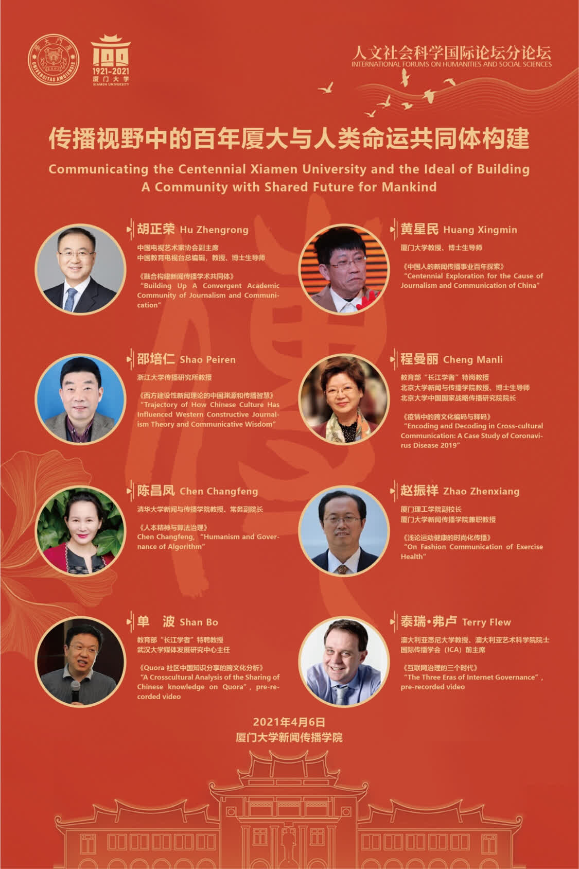 由于时差原因,澳大利亚人文科学院院士、悉尼大学教授、国际传播学会原主席Terry Flew和美国哥伦比亚大学新闻学院Richard John以预先录制视频的方式做了大会发言,其主题分别为《互联网治理的三个时代》和《当代文明的承诺》。