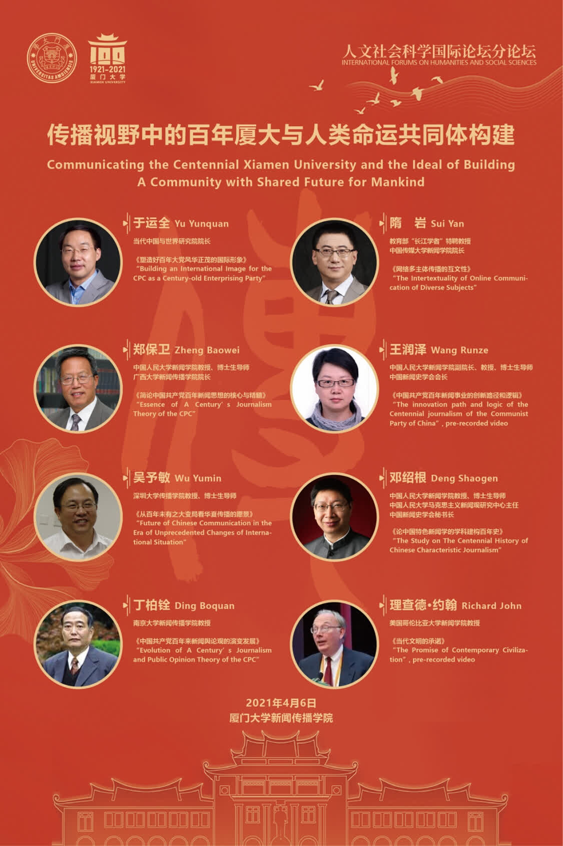4月6日厦门大学百年校庆,由厦门大学主办、新闻传播学院承办的人文社科国际论坛“传播视野中的百年厦大与人类命运共同体构建”分论坛在厦门大学思明校区南光楼成功举办。一百多名来自国内外高校新闻传播学院的专家学者以及在校研究生,围绕论坛主题分别以16个大会发言和48篇论文的方式进行了深入交流,期间还进行了一场关于“新闻传播学科的新文科建设路径”的圆桌讨论,最后在中国社科院新闻与传播研究所所长唐绪军教授总结致辞的掌声中落下帷幕。