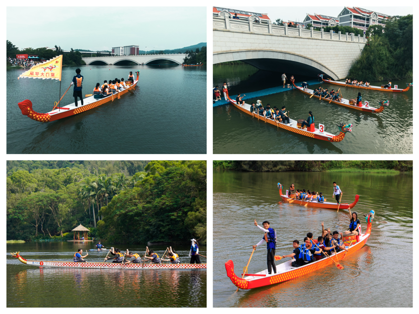 开幕式当天,龙舟赛于思明校区思源谷、翔安校区水上基地同步鸣锣开赛。一条条龙船在水面乘风破浪,师生齐心协力奋勇向前。随着战鼓阵阵,呐喊声声,比赛逐渐进入白热化阶段,每支队伍都为了获得最后的胜利而倾尽全力。