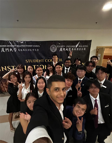艾罕·阿马尔·阿卜杜拉与学生会的伙伴自拍合影。受访者供图