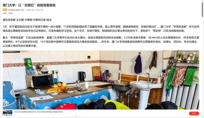 “一直以来,学校坚持系统培育践行志愿精神的良好校园风气,引导各级青年组织、特色服务队和公益社团根植于深厚的志愿文化沃土,涵养‘致知无央,充爱无疆’的文化底蕴,创新开展主题深刻、层次丰富的志愿服务品牌项目,持续推动志愿小课堂与社会大课堂有机融合。”厦门大学党委副书记孙理说:“如今,这片沃土上一朵朵盛放的志愿之花,正汇成一道温暖而有力的青春亮丽风景。”