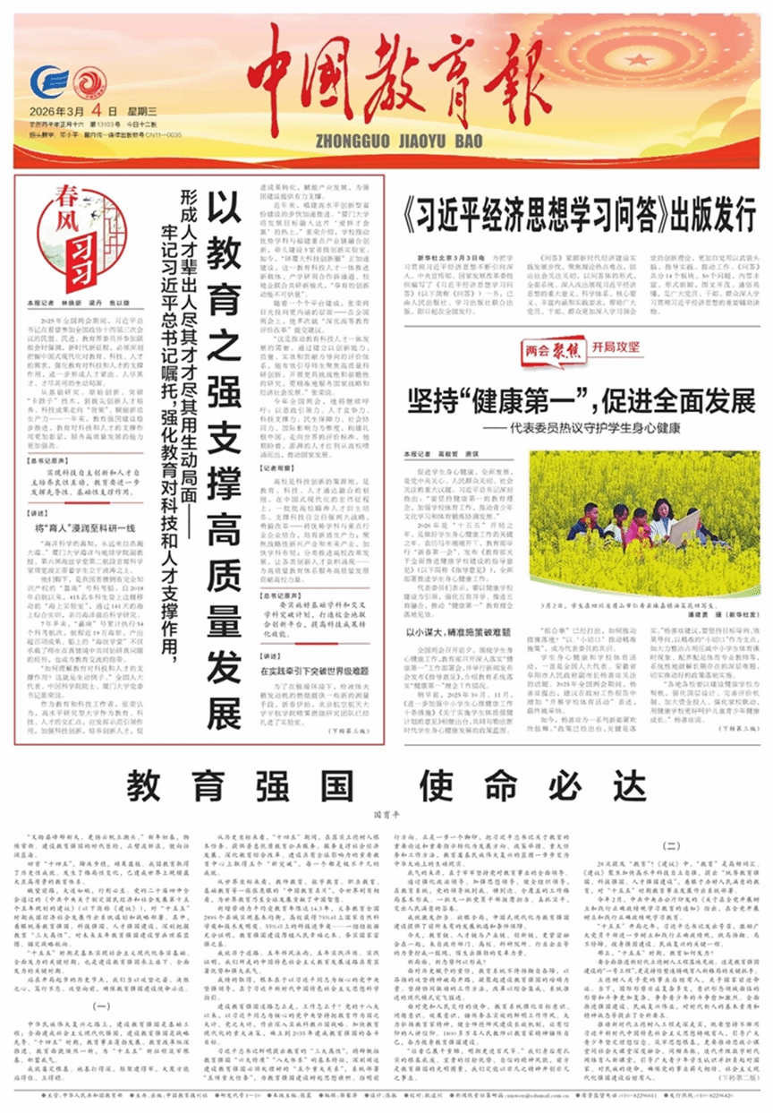 原载于2026年3月4日《中国教育报》头版