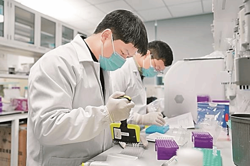 2025年11月20日,在苏州工业园区一家生物制药企业,实验人员在提取信使核糖核酸。新华社发