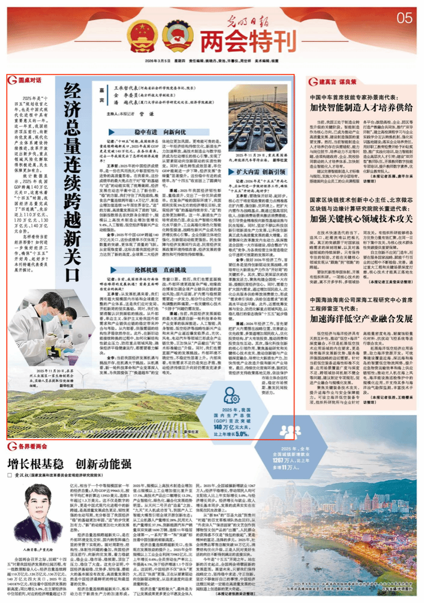 记者:“十四五”时期,我国经济总量连续跨越新关口,2025年我国GDP更是突破140万亿元。在各位看来,过去一年我国交出了怎样的经济成绩单?