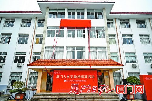 按照88级校友意愿,厦大将思明校区原有的新闻大楼命名为“至善楼”,“至善”取自于厦大校训“自强不息,止于至善”。昨天下午,“至善楼”举行揭幕仪式。