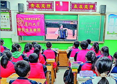 厦门大学团委副书记梁振伟介绍,在热播电视剧《山海情》里,白校长在歌唱比赛中为学生们拉手风琴伴奏的剧情,就是该校研究生支教团在宁夏支教地开展美育课的真实写照。自2016年起,入选厦大研究生支教团的队员除了要进行系统的教学实习,还要参加为期一年的手风琴培训——手风琴易学易懂、携带方便,能够演奏出多种不同风格的乐曲,便于在中小学课堂里推广。