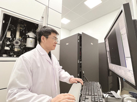 廖洪钢采用团队开发设备在电子显微镜中进行原位实验研究。