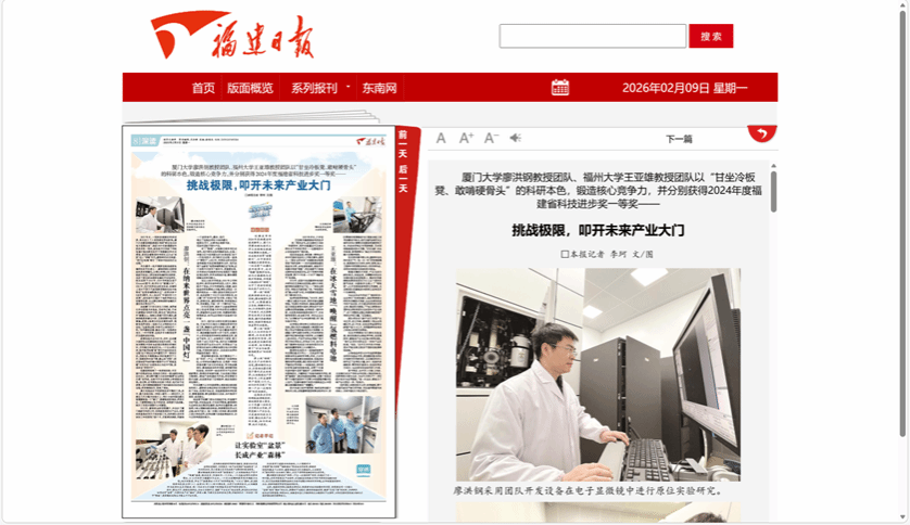 临近春节的厦门街头已挂起灯笼,洋溢着节日的气氛。而实验室里,灯光依旧明亮。廖洪钢和几名研究生还围在电镜前,低声讨论着屏幕上那些常人难以理解的跳动轨迹。探索微观世界永无止境。纳米尺度上,每一次微小的突破,都在拓展人类认知的边界。这束自厦大实验室亮起的光,如今正照向更远的地方。