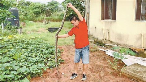 上周,在接受厦门日报采访时,谈到蟒蛇,余章宝突然从座位上弹起,介绍自己抓获2米长蟒蛇的“实战心得”:“刚开始经验不足,我直接抓住蟒蛇中间部位,一把举起来。它立刻扭头就朝我扑过来!”
