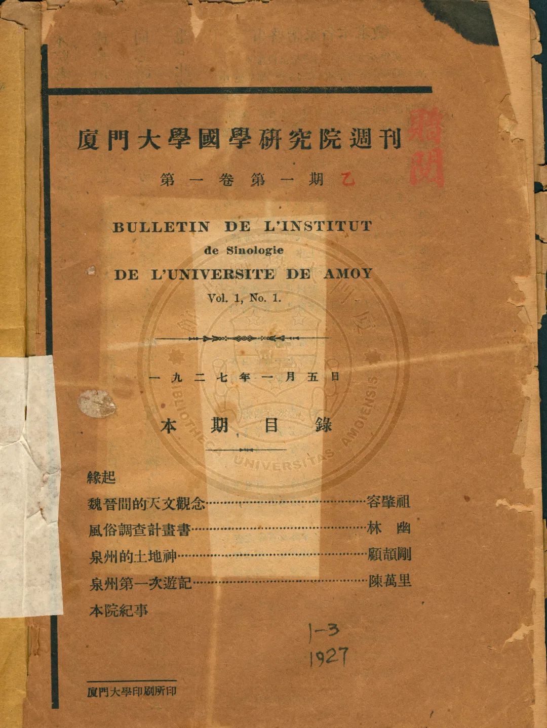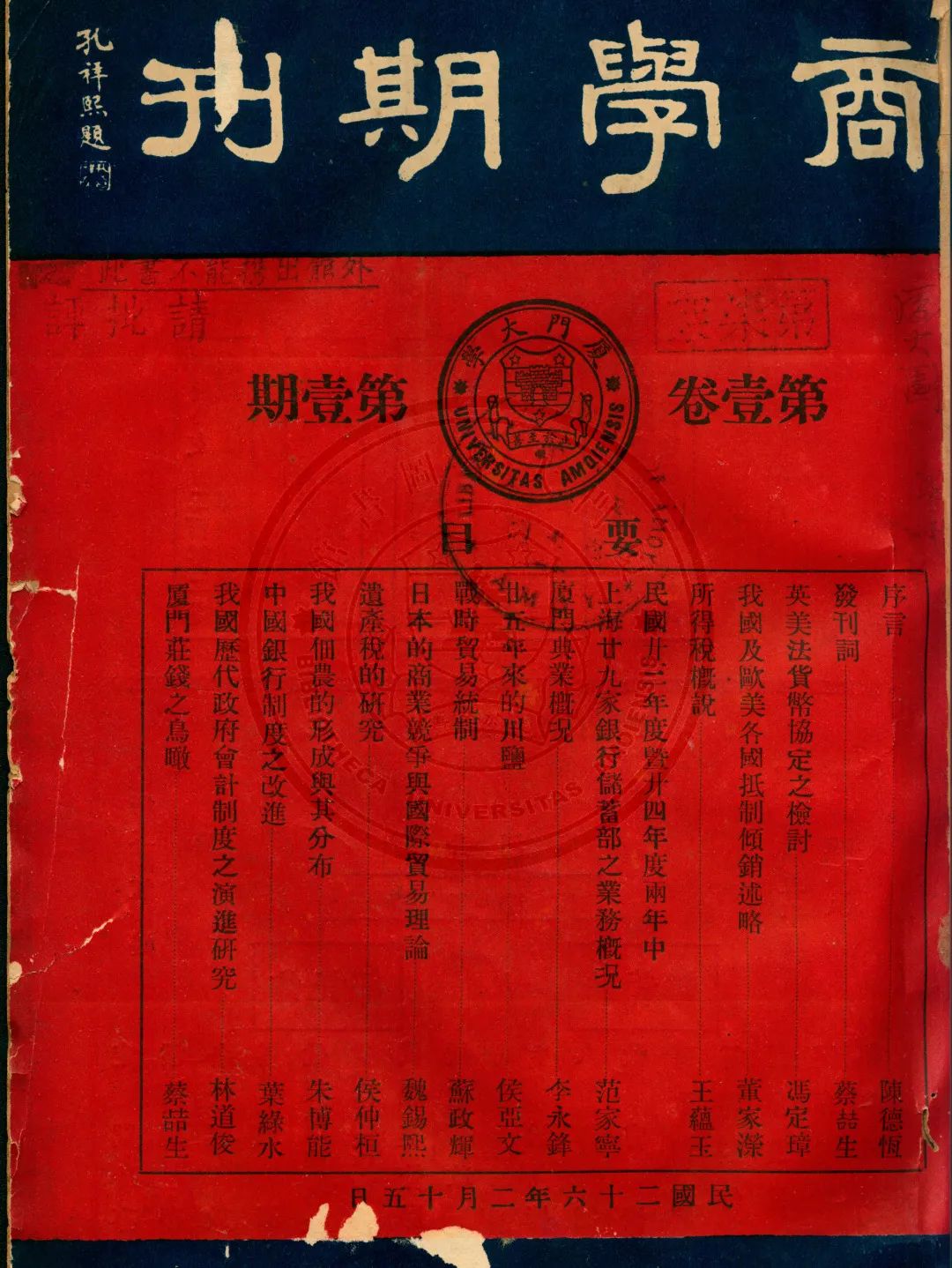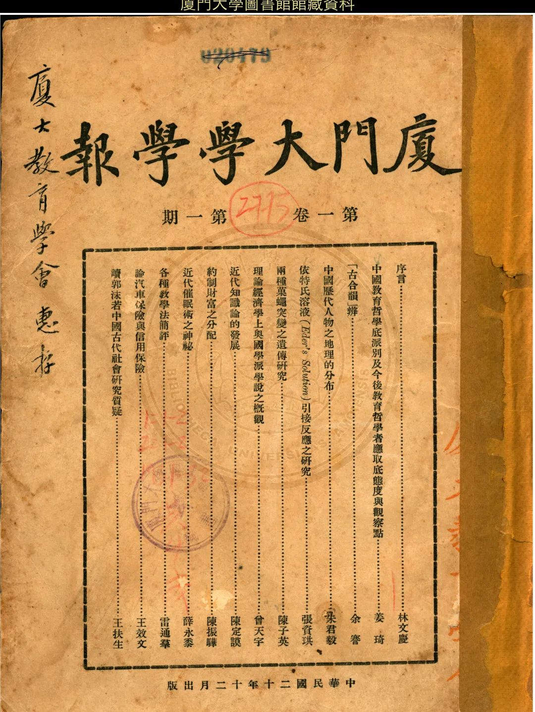 在馆藏特藏资料中,既有《厦大周刊》《厦大校刊》等学校机关报刊,也有《唯力》《救亡言论》《厦大职声》等师生社团刊物,还有《厦大通讯》《粤声》《厦大毕业同学录》等校友刊物,更有反映科研进展的《厦门大学学报》《厦门大学国学研究院周刊》《商学期刊》《海产生物学集刊》等学术刊物,等等。