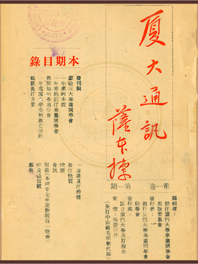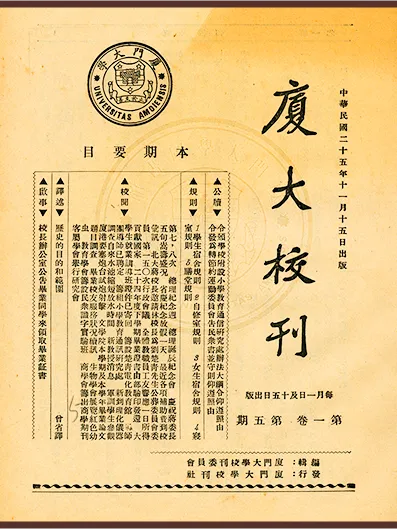从私立到国立、从东海之滨到长汀山区,校办刊物与厦门大学同呼吸、共命运,不仅忠实记录了学校的发展历程、校友的动态信息,也彰显了教育救国思想和“自强不息,止于至善”的精神。由于时代变迁造成档案资料散佚,这些种类丰富、包罗万象的校办刊物逐渐成为校史研究的基础文献。