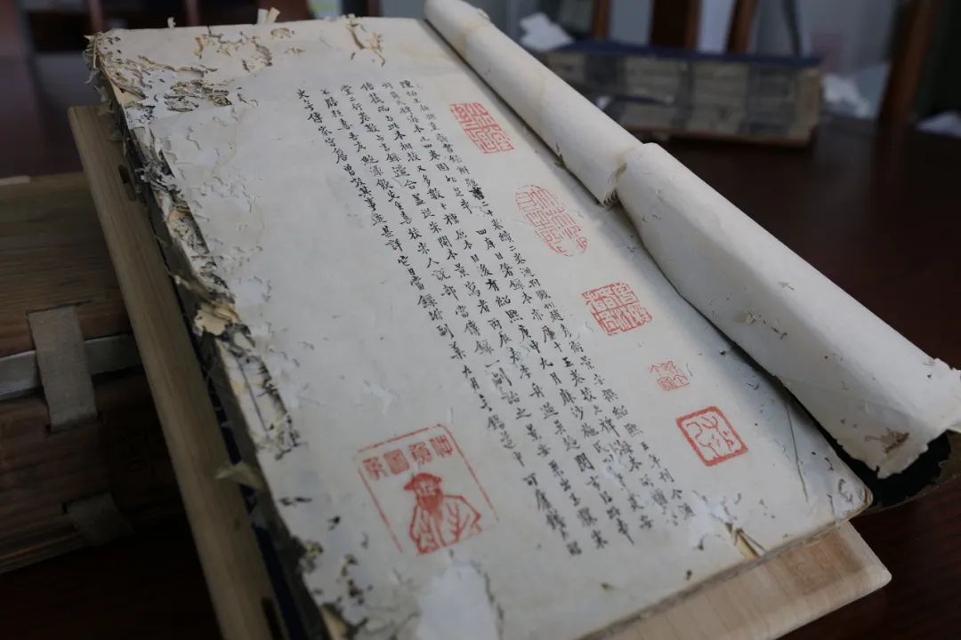 ▲厦大图书馆藏二十二卷《云麓漫钞》,棉纸十行黑格抄本,五函三十册(此书破损严重,现已列入本馆古籍修复计划)