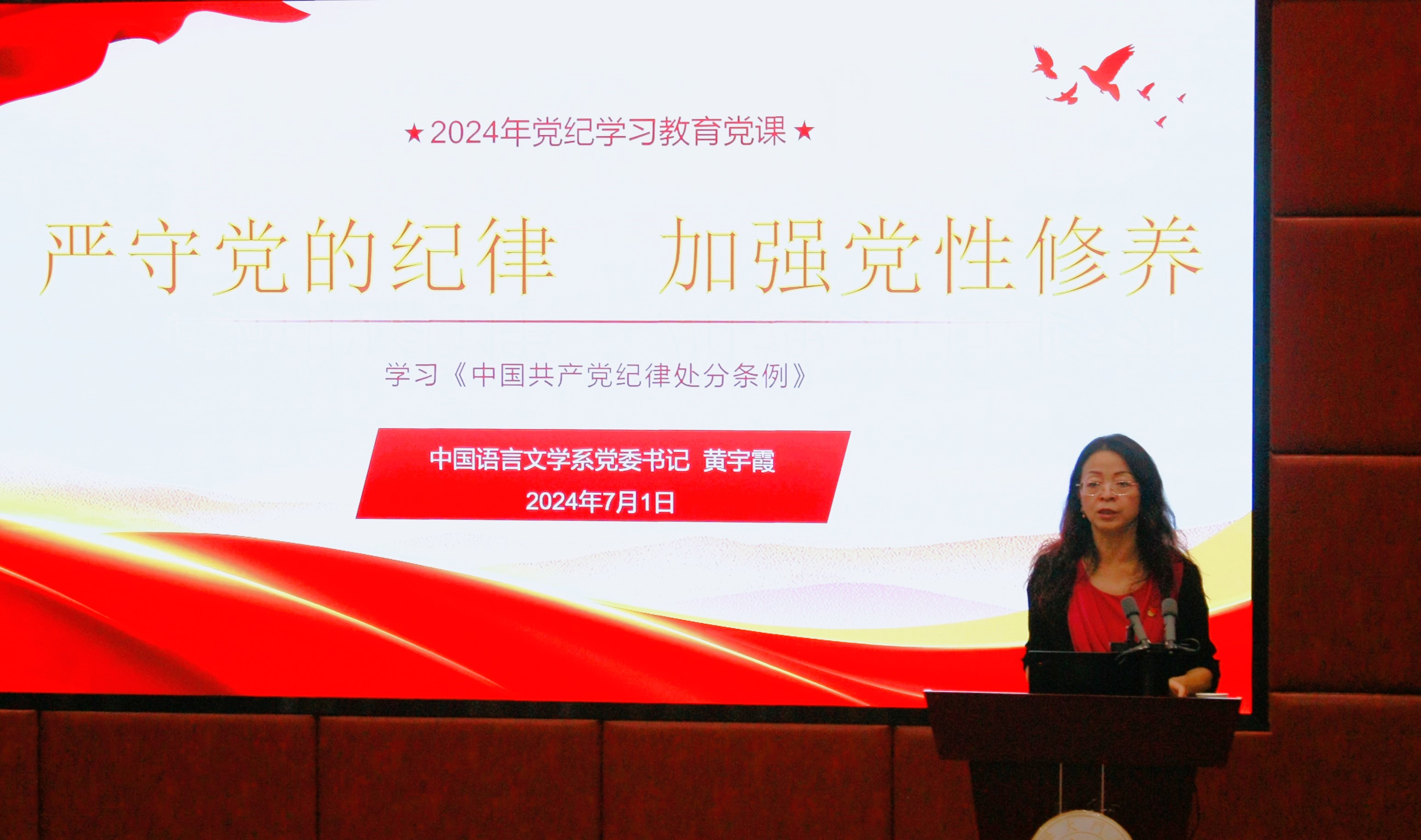 在全党上下深入学习贯彻习近平总书记关于加强党的纪律建设的重要论述,推动党纪学习教育入脑入心、走深走实之际,为庆祝中国共产党成立103周年,7月1日下午,中国语言文学系在南光一101报告厅举行庆祝中国共产党成立103周年大会暨党纪学习教育专题党课。校基层党建联络员王康平、系领导班子成员和全体党员参加会议。
