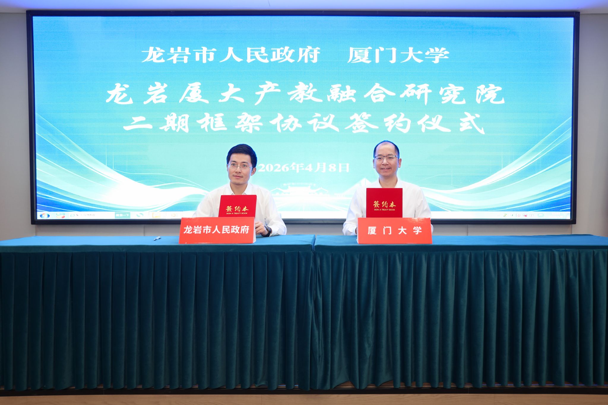4月8日上午,龙岩厦大产教融合研究院(以下简称“研究院”)二期合作签约暨揭牌仪式在龙岩人才和大数据发展集团有限公司举行。龙岩市人民政府副市长王波、龙岩学院副校长胡志彪、龙岩市科技局局长王汝彬,我校党委常委、副校长尤延铖,中国科学院院士、表界面化学全国重点实验室主任、化学化工学院教授谢素原,化学化工学院党委书记宋毅等出席活动,龙岩市相关部门负责人,以及我校科技处、国内合作办、化学化工学院、环境与生...