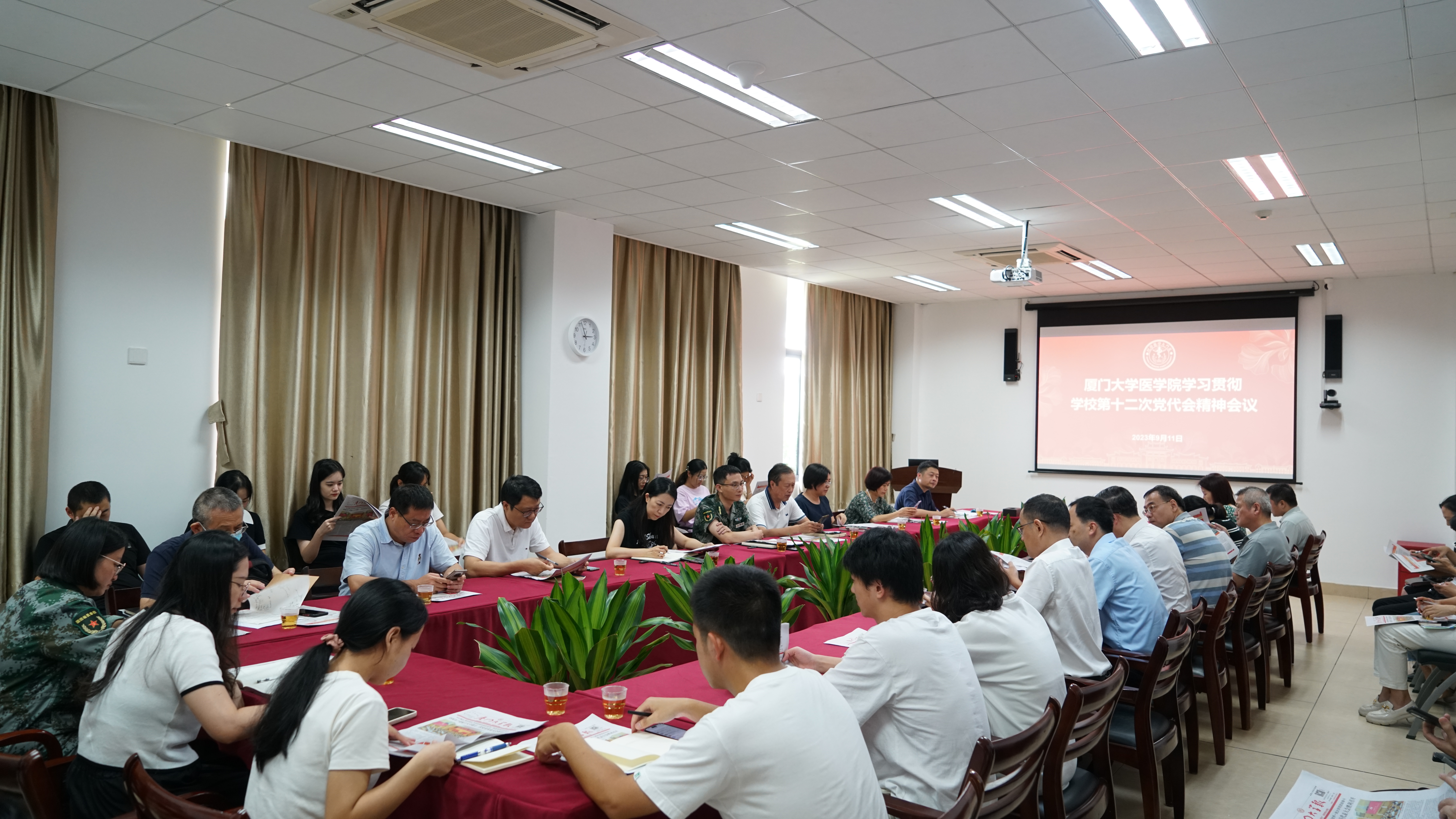 9月11日下午,医学院党委在翔安校区爱礼楼114会议室召开2023年第12次党委会(扩大)会议,学习贯彻学校第十二次党代会精神。学院党政领导班子成员、党委委员、本次党代会的党代表、师生党支部书记或支委和学院党政管理人员参加会议。会议由学院党委书记李峰主持。