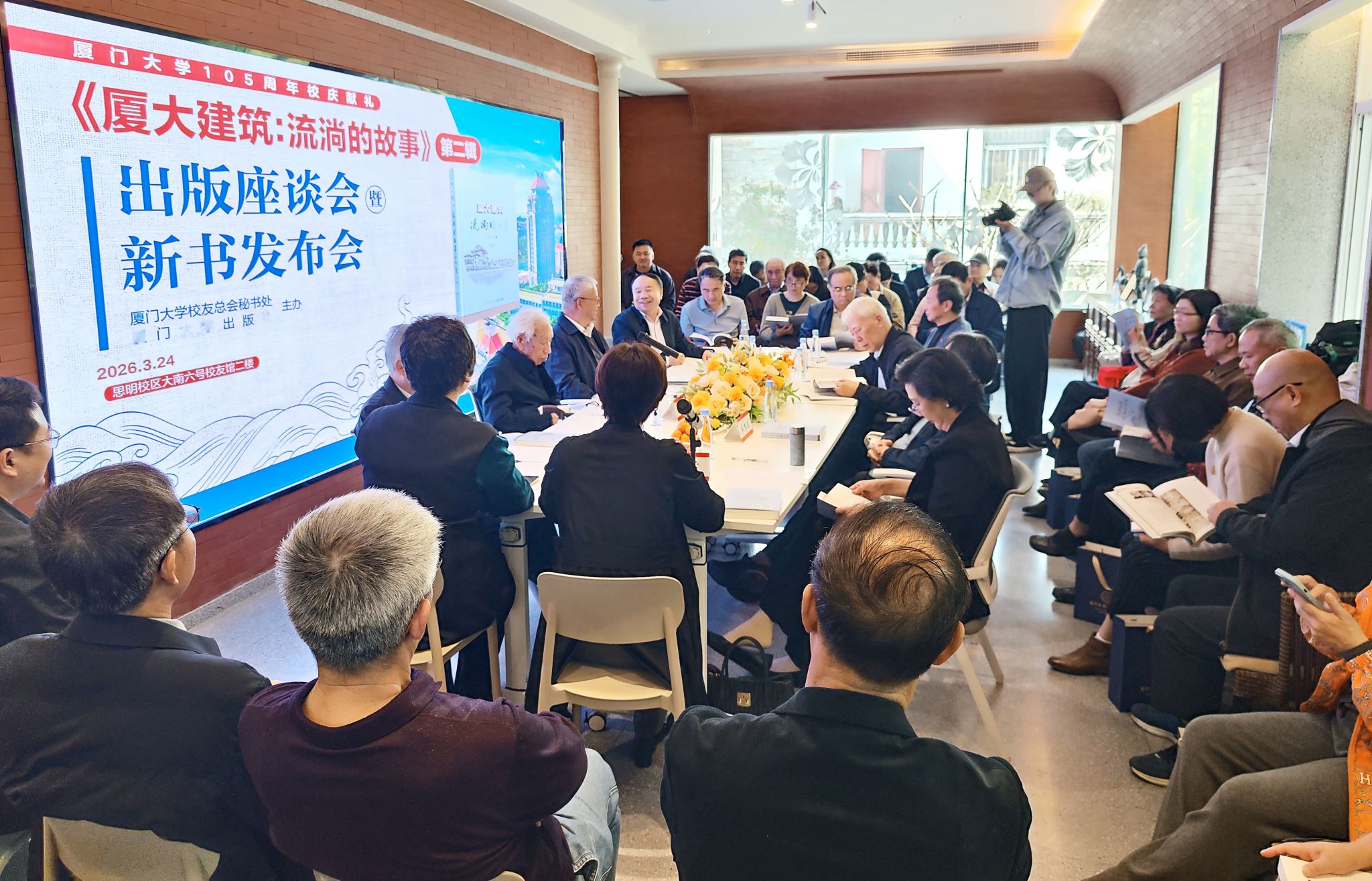 3月24日下午,为祝贺厦门大学建校105周年,由厦门大学校友总会秘书处、厦门大学出版社联合主办的《厦大建筑:流淌的故事》(第二辑)出版座谈会暨新书发布会在思明校区校友馆举行。台湾研究院资深教授陈孔立先生,中国科学院院士田中群教授,厦门大学原常务副校长、校友总会荣誉理事潘世墨教授,原副校长、本书顾问邬大光教授,原副校长、校友总会副理事长詹心丽,校党委原副书记、校友总会副理事长赖虹凯,校党委常委、党委宣...