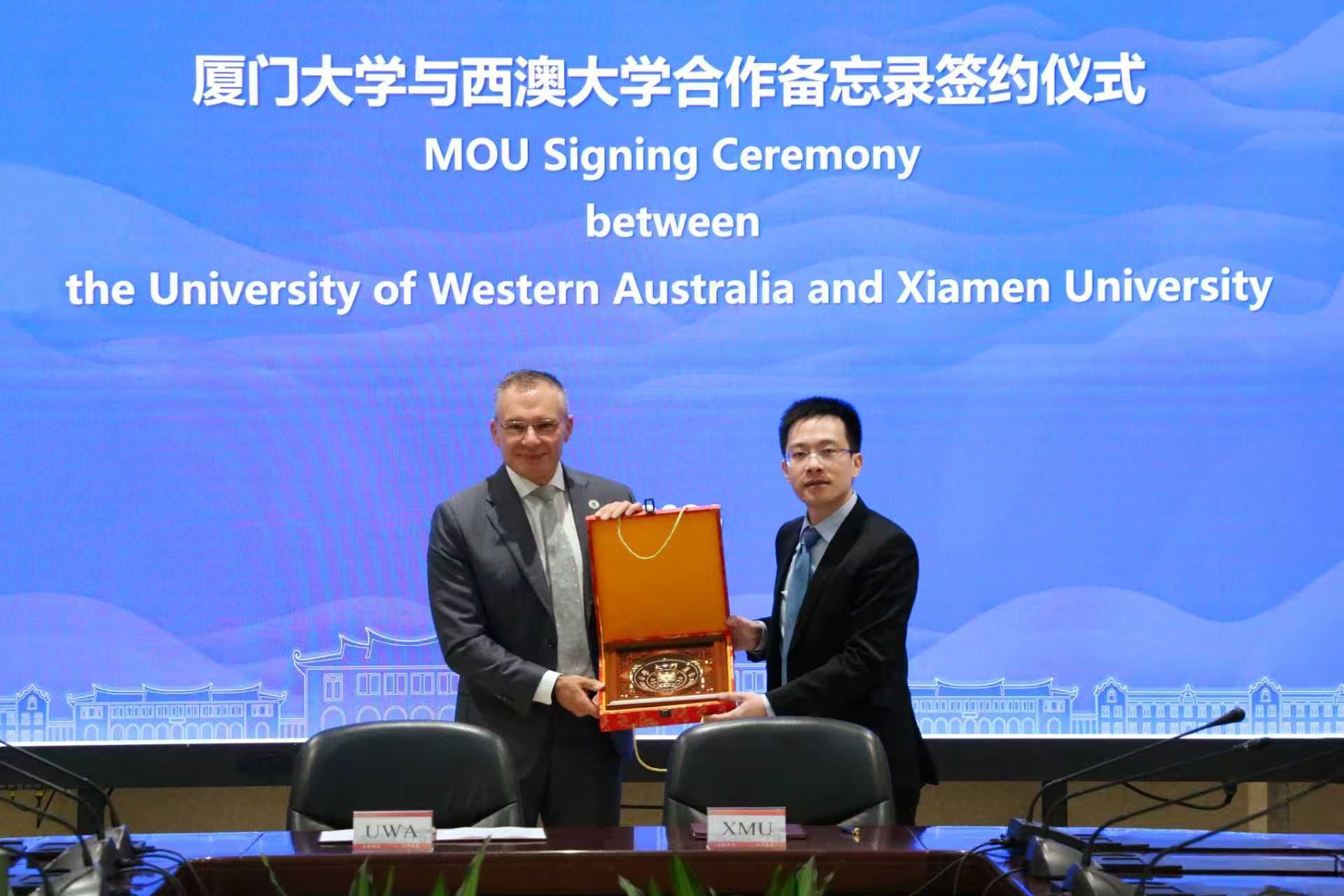 1月26日,澳大利亚西澳大学副校长盖伊・利特费尔(GuyLittlefair)一行到访厦门大学,双方正式签署合作备忘录。厦门大学副校长史大林出席签约仪式,教务处、财务处、招考办、国际交流与合作处等相关职能部门负责人共同列席。史大林代表厦门大学对西澳大学代表团的到访表示热烈欢迎。他向来宾介绍了学校百年来开放办学的理念和成果。他表示,厦门大学和西澳大学均依海而生、因海而兴,在海洋环境、生命科学、可持续发展等前沿...