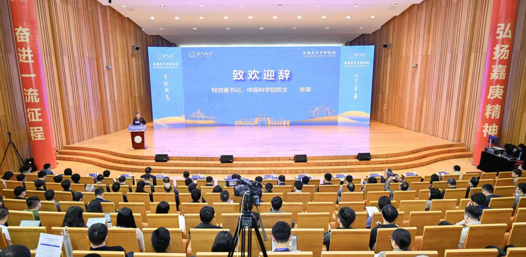 12月24日至27日,厦门大学举办2025年南强青年学者论坛,来自世界各地近150位优秀青年学者齐聚一堂,共话学术创新与人才发展。校党委书记、中国科学院院士张荣,校务委员会副主任、中国科学院院士戴民汉,副校长史大林,厦门市委组织部部务委员骆磊,校长助理、人事处处长谢兆雄等出席主论坛。张荣指出,“人才强校”是贯穿厦大百年历史的最深沉基因与最坚定步伐,学校始终将人才资源视作立校之基、兴校之本、强校之源。他强调,...