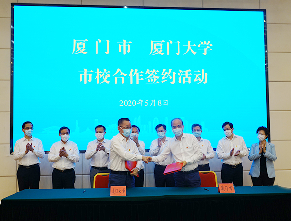 近年来,厦门市和厦门大学深度融合、协同增效,市校合作成果丰硕,势头良好。学校不断强化全面贴近、全面融入、全面服务的理念,主动融入厦门城市发展规划,紧紧围绕厦门千亿产业链布局,在生物医药与健康、机械装备、新材料、半导体与集成电路、软件信息服务等产业发展方面加强科技研发,加速科研成果在厦门落地转化,促进厦门市创新驱动发展。学校积极为厦门市培养输送高素质人才,大力引进各类高层次人才,引导师生积极投身创新创业,助力厦门打造“人才特区”,积极发挥“智囊团”“思想库”作用,为厦门推进高质量发展提供高端决策咨询服务。