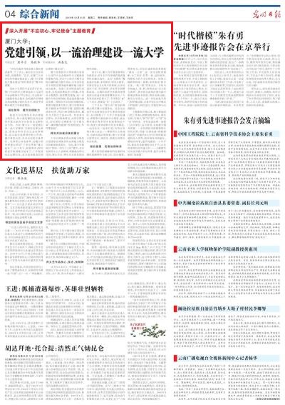 12月31日,《光明日报》第四版(综合新闻)刊发题为《厦门大学:党建引领,以一流治理建设一流大学》的深度通讯。