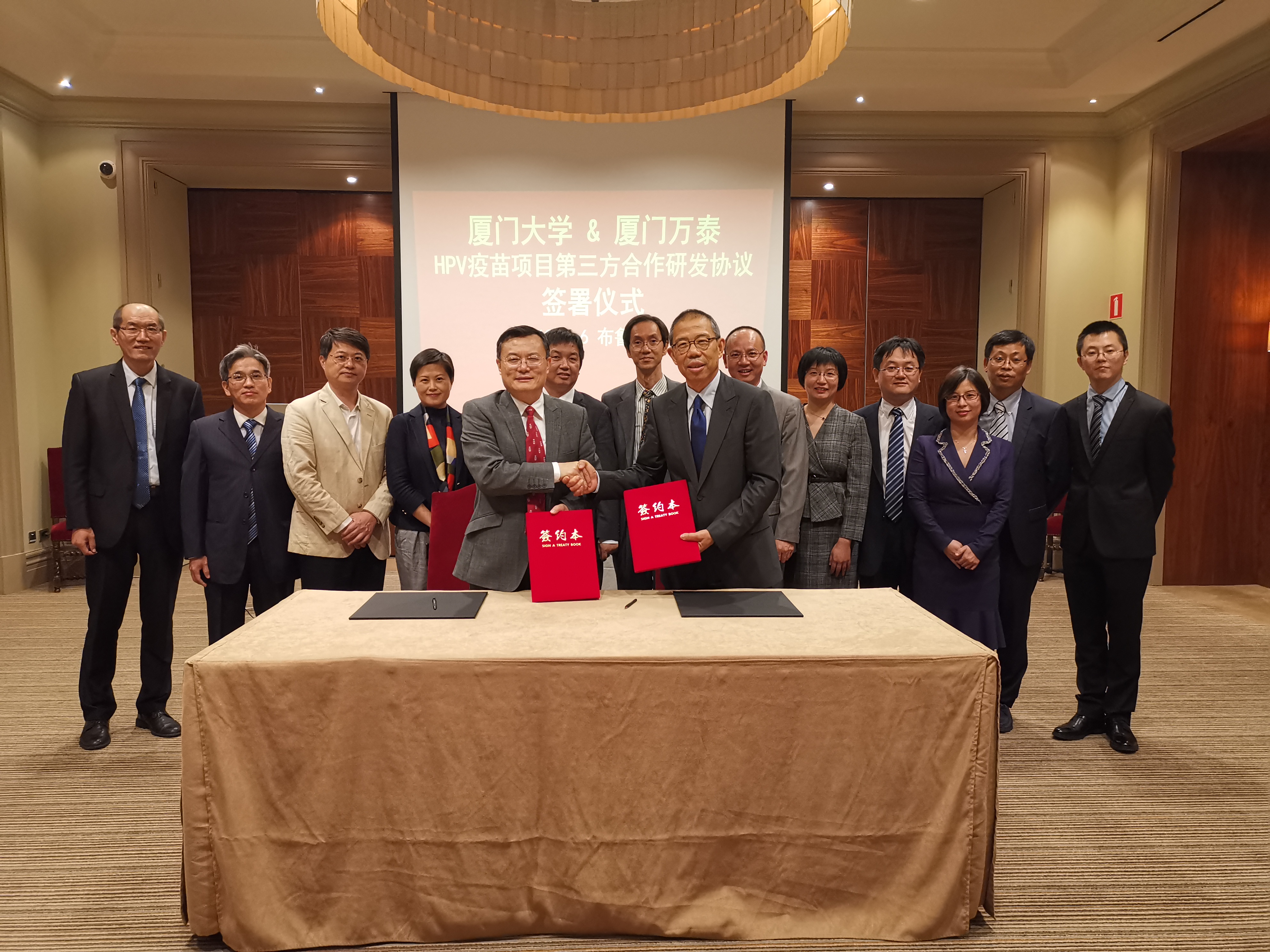 由我校研制、养生堂旗下厦门万泰沧海生物技术有限公司承接转化的首个国产二价宫颈癌疫苗,在国内率先完成了三期临床试验,已于2017年11月在国内提交疫苗上市申请。此后,作为国际四大疫苗巨头的GSK全速推进了合作探讨的步伐。此次与GSK签约,标志着我校与养生堂万泰二十年来的产学研一体紧密合作模式的再一次开花结果,进一步强化了“校企合作,共同成长”的良性循环。双方在疫苗领域长期开展关键核心技术创新,推出了全球首个戊肝疫苗、宫颈癌疫苗等一系列高质量原创疫苗,在国际疫苗界铸就了中国技术新优势,为中国疫苗树立了新形象。
