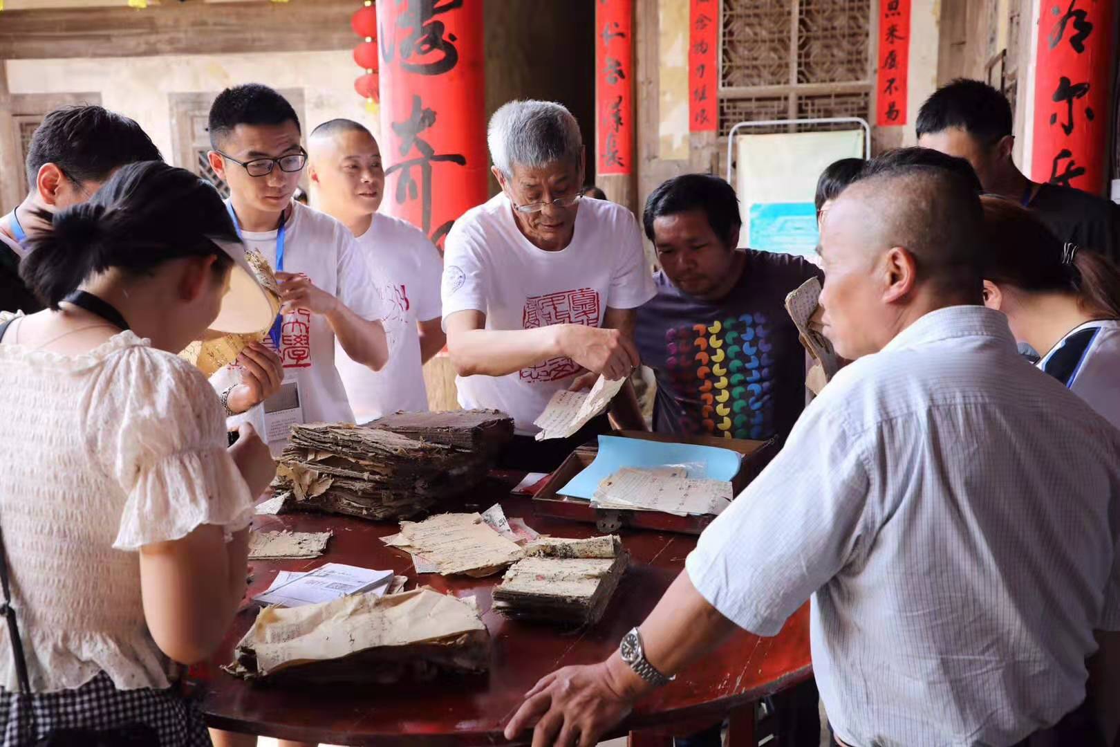厦大历史系饶伟新教授,哈佛大学宋怡明教授和当地老乡讨论鲍氏族谱文书问题。