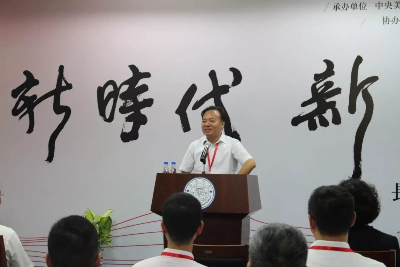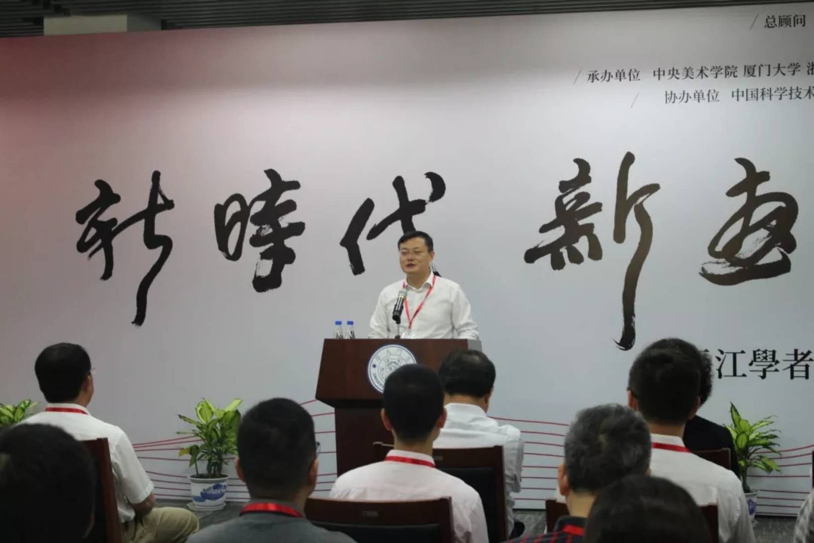 张彦宣布画展开幕。“新时代新画卷-——长江学者书画展”在全国设立七个分会场,其中东南片区由厦门大学承办,展出了长江学者、两院院士、高校领导和人才工作者书画作品60余幅,全面展示了长江学者的家国情怀、艺术造诣和创新活力。